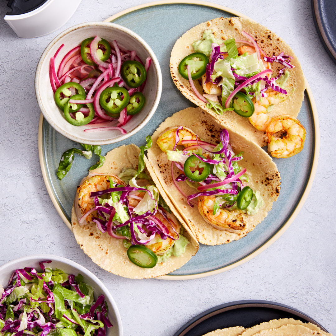 let's taco 'bout the best way to enjoy tuesday—with tacos! and no taco night is complete without tasty toppings to choose from. we love the little kick on these air fried shrimp. will you spice them up with jalapenos, or turn the temperature down with our avocado crema?