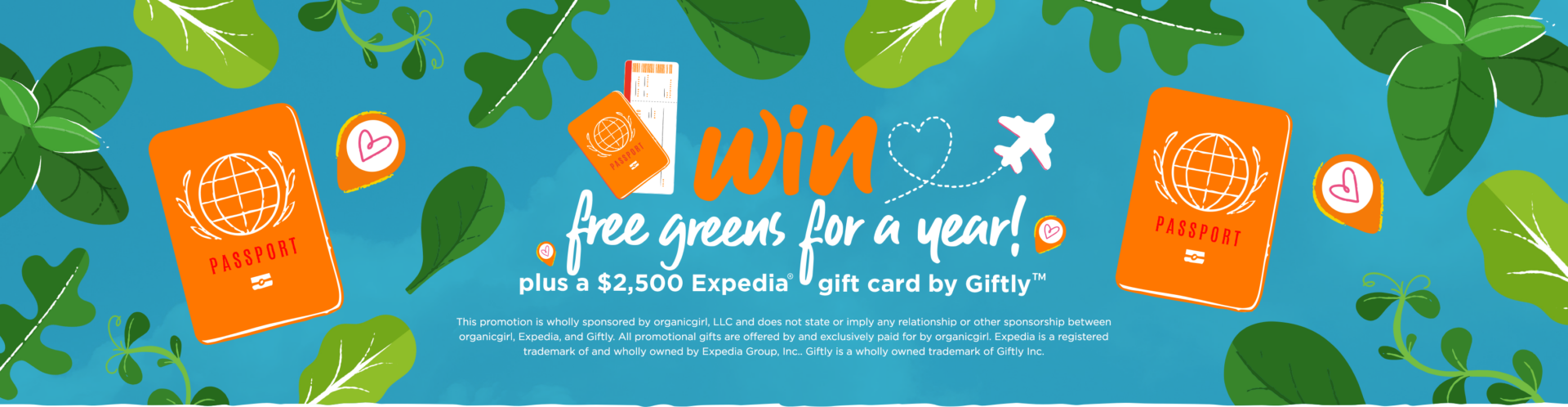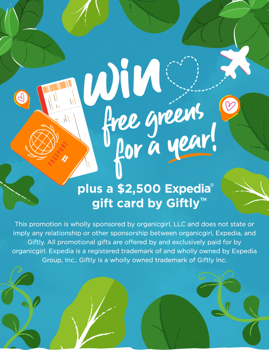 1 year of organicgirl greens + $2,500 Expedia® gift card by GiftlyTM