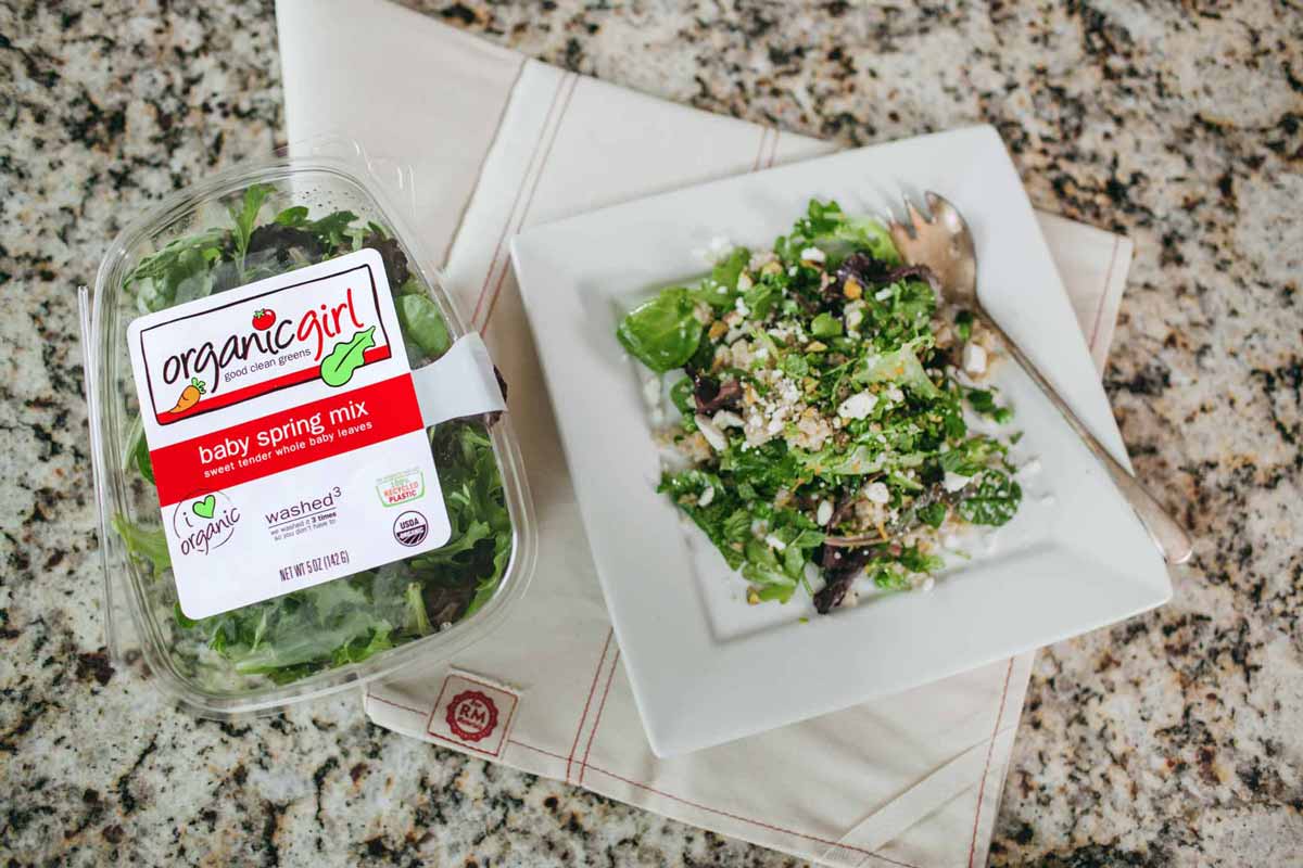 – in a large bowl or serving platter, add organicgirl baby spring mix.