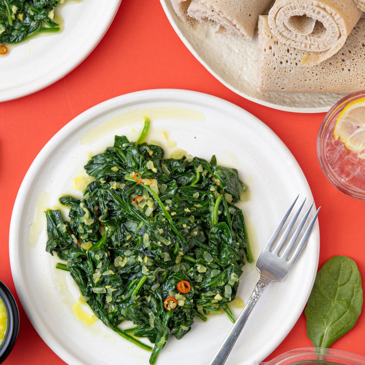add a taste of traditional ethiopian flavors with these sautéed greens! first, you'll clarify butter with spices in a process that is similar to making ghee. then cook greens (we used spinach) in this buttery deliciousness for a warming side dish that is perfect for your winter table! serve atop injera, or ethiopian flatbread that is actually gluten-free!