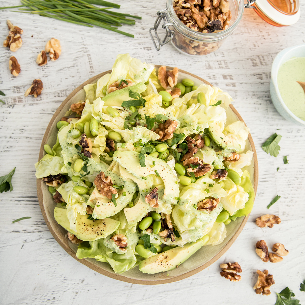 green goddess cheddar salad with toasted walnuts