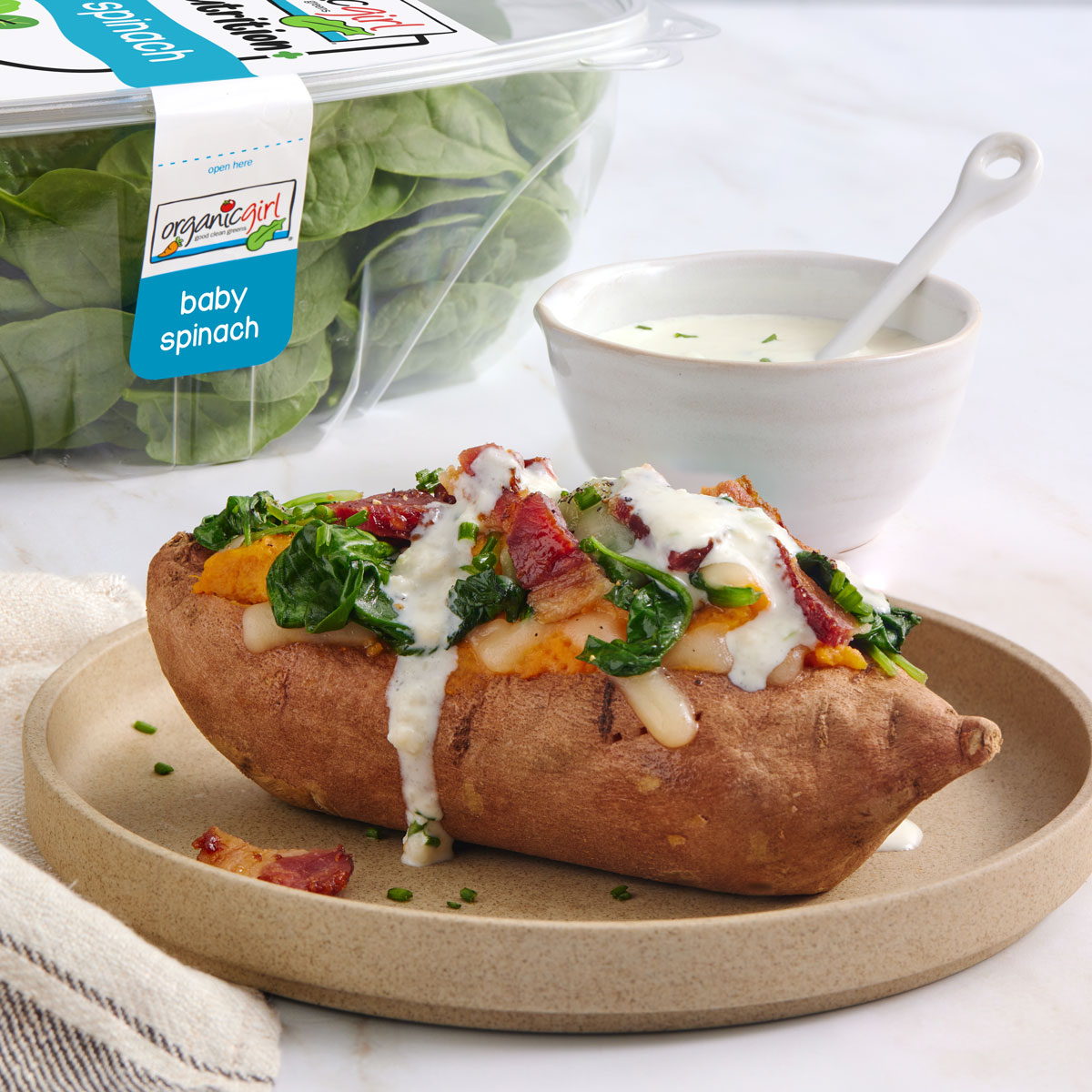 ¾ cup organicgirl® white cheddar dressing, divided