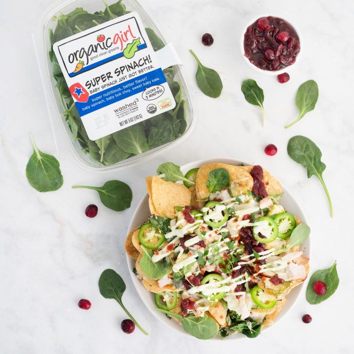 put a creative twist on leftovers with this thanksgiving nachos recipe! the good thing about nachos is that you can put whatever you want on them! for a new flavor, use up some thanksgiving leftovers like turkey and brussels sprouts and top it off with SUPER SPINACH! and jalapeños. great as a snack, appetizer or side dish!